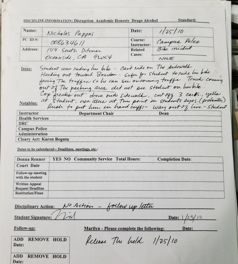The time I was handcuffed by a JC campus “police officer”